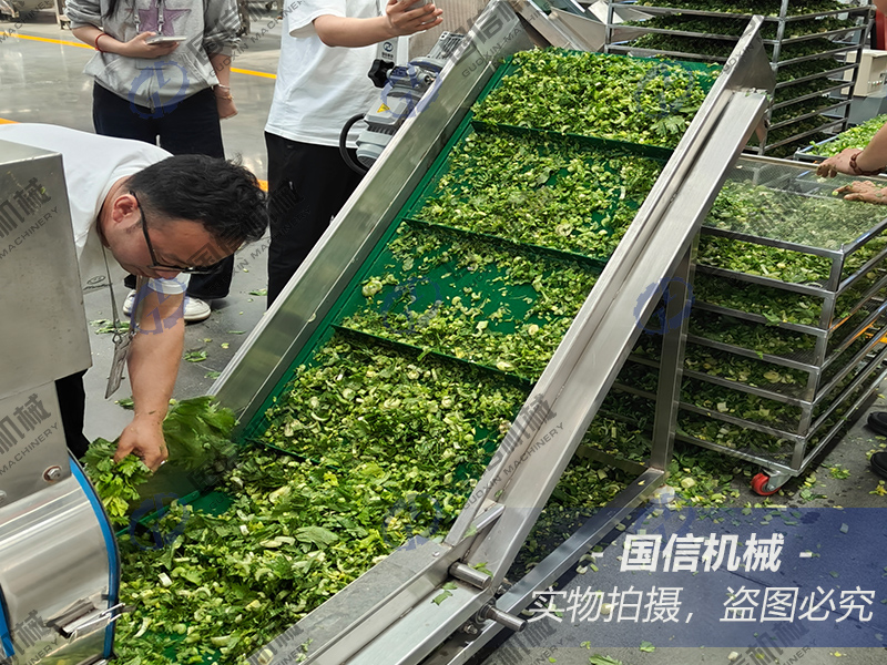 導(dǎo)讀: 2025年5月16日,客戶帶幾百斤芹菜來廠試機(jī)烘干,不僅要烘干后的芹菜干,烘干中產(chǎn)生的冷凝水也要打包二次加工再出售,芹菜烘干全程用了十個(gè)小時(shí)左右,成品最后裝車發(fā)給客戶。